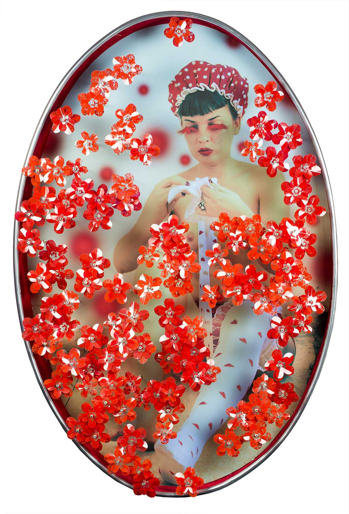 Impresión sobre PVC, flores en acetato y acero